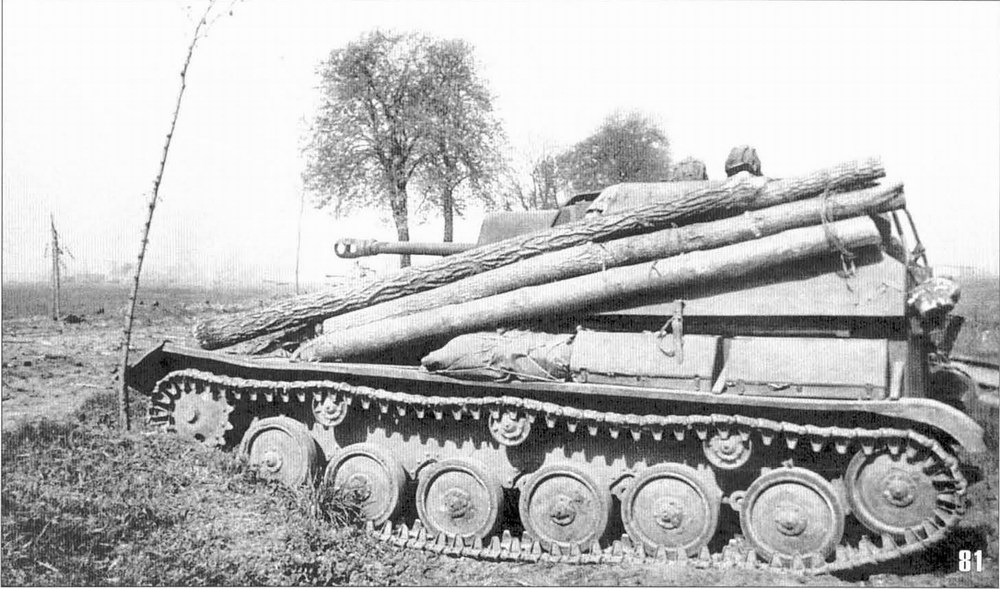 SU-76M under command of Junior Lt. I.I. Ivanov in action. Brandenburg territory, 1st Byelorussian Front, April 1945. Put attention to the logs for self-recovery attached to the left side of the vehicle [1] |