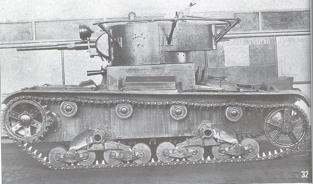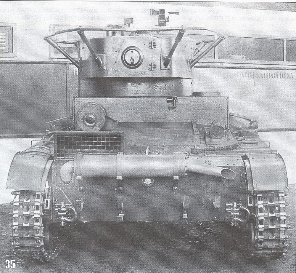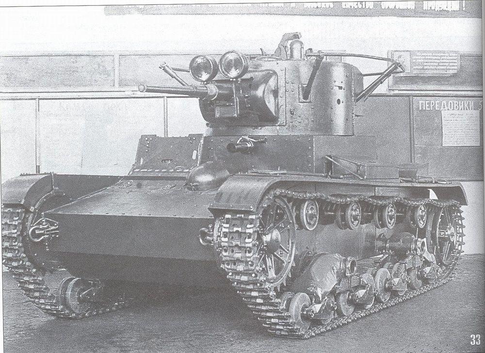 The general view of T-26M35 tank (produced in 1936) equipped with radio transmitter and welded hull & turret. [1]