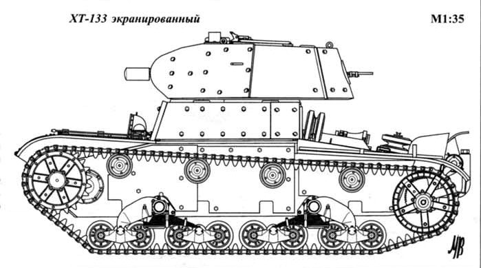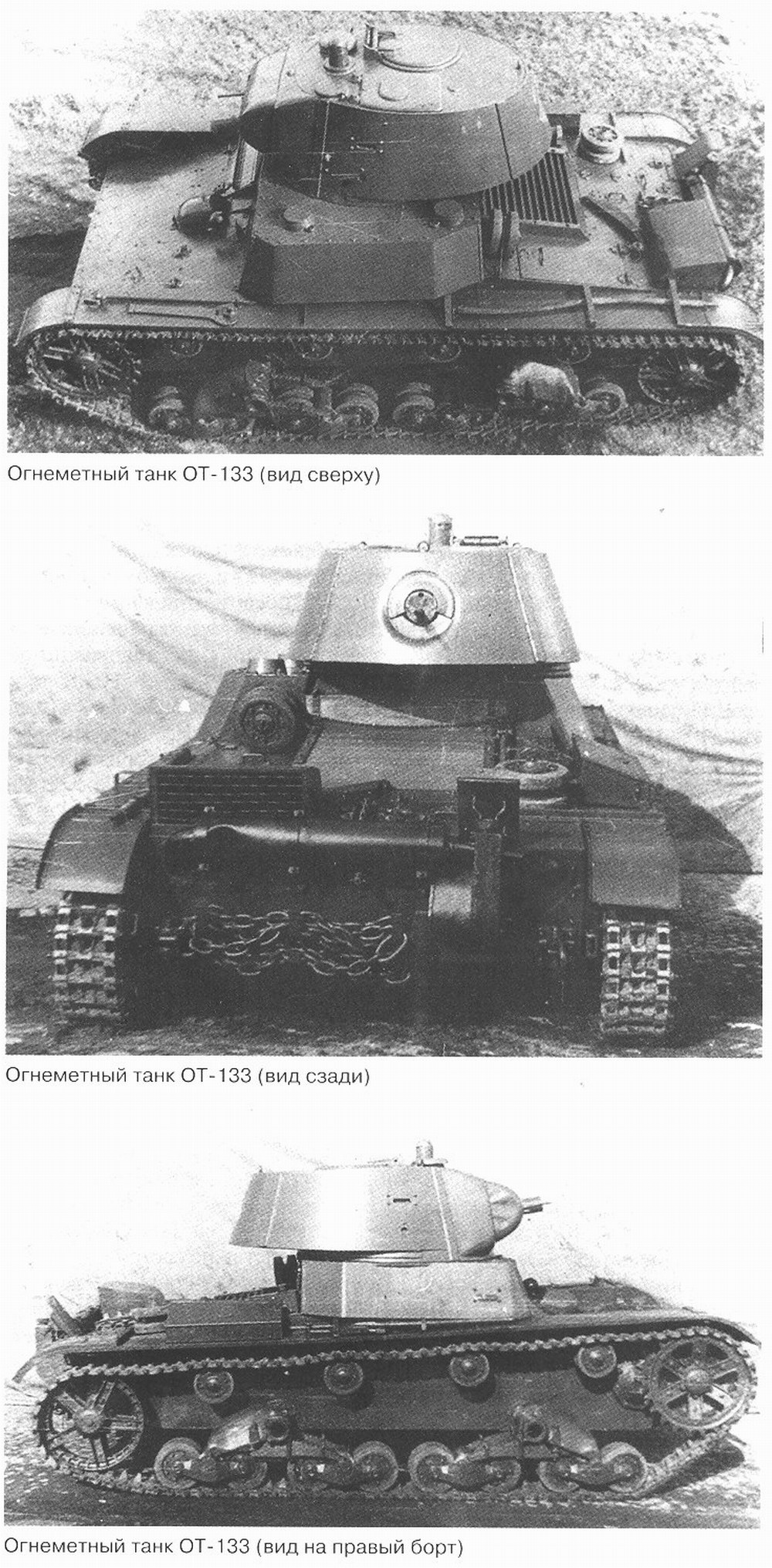 OT-134. Tank OT-134 being tested in Kubinka in summer of 1940. The flame-thrower is clearly seen in the mid section of the sloping armour plating to the hull. The vehicle originated came from the Karelian isthmus and had been combat. To reduce weight the additional armor had been removed [6] |