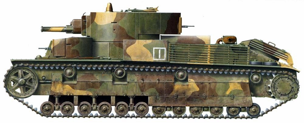 T-28 in three-color camouflage. Karelian Front, 14th Army, 107th Separate Tank Battalion, September, 1941. White number "1" indicates this vehicle to belong the 1st company [1] |