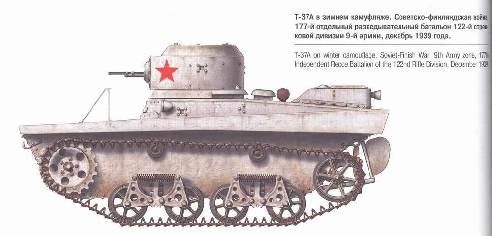 Т-37А in winter colors. Soviet-Finish War, 9th Army zone, 177th Separate Recon Battalion of the 122nd Rifle Division. December 1939 [5] |