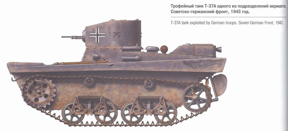Т-37А tank exploited by German troops. Soviet-German Front, 1943. [5] |