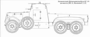 KS-18 was based on ZIS-6 chassis. Cabin and 1000 liter tank were protected by 4-8 mm armor. Vehicle could be employed for smoke screens, degassing (2600 m²) and contamination (25m width area).