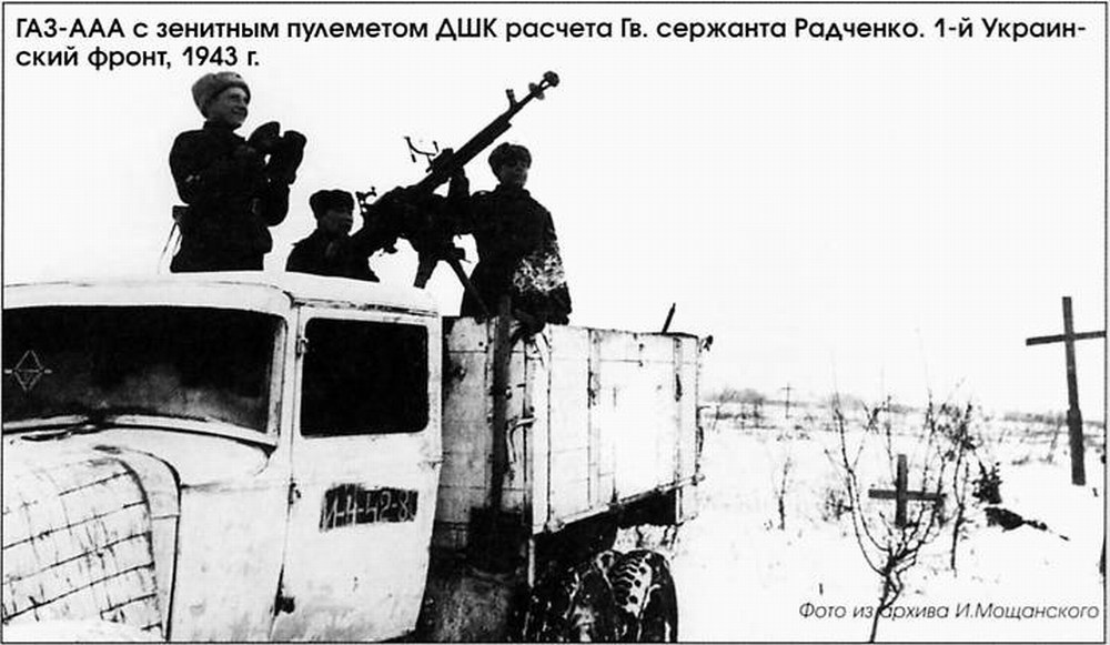 DShK 12.7mm antiaircraft machine-gun mounted on GAZ-AAA chassis.Crew of Gds. Sergeant Radchenko, the 1st Ukrainian Front, 1943 [1] |