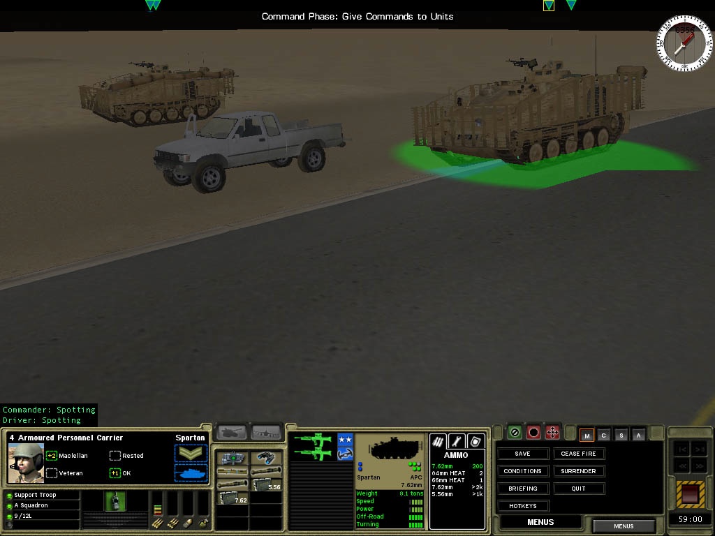 The British forces have all their standard equipment including the Scimitar, Spartan and Warrior infantry fighting vehicles as well as the Challenger 2 main battle tank and Jackal patrol vehicle. In fact, the British seem to have a large amount of IVFs in their orders of battle-making for some very interesting variations during battles. The infantry uses variations of the L85 assault rifles as well as the L22A2 and the L86A2. This game also adds on-screen mortars for the Brits to pound their enemies with. Of course, the mortars have to be effectively deployed or else they and their crew are sitting ducks for enemy fire.