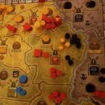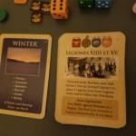 If a faction being attacked has a fortification, this can cut the number of forces removed down significantly. If you have more forces in a province, you get points for controlling it. After all factions have taken their actions, the used event card is moved to the discard pile and the face up event card is now the active card. The next card on the draw pile is then turned face up and evaluated and the entire sequence starts over again. After a given number of event cards are drawn, a Winter card shows up as the active card and it triggers specific actions.