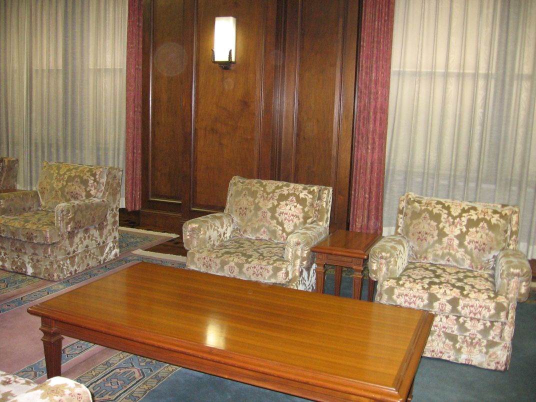 MacArthur’s office is between the reception area and his staff’s office. Dai-ichi management has carefully tried to preserve the original setting of the General’s office, including his desk, chair, picture frames, two original paintings by a little-known Boston painter, similar drapes, etc.