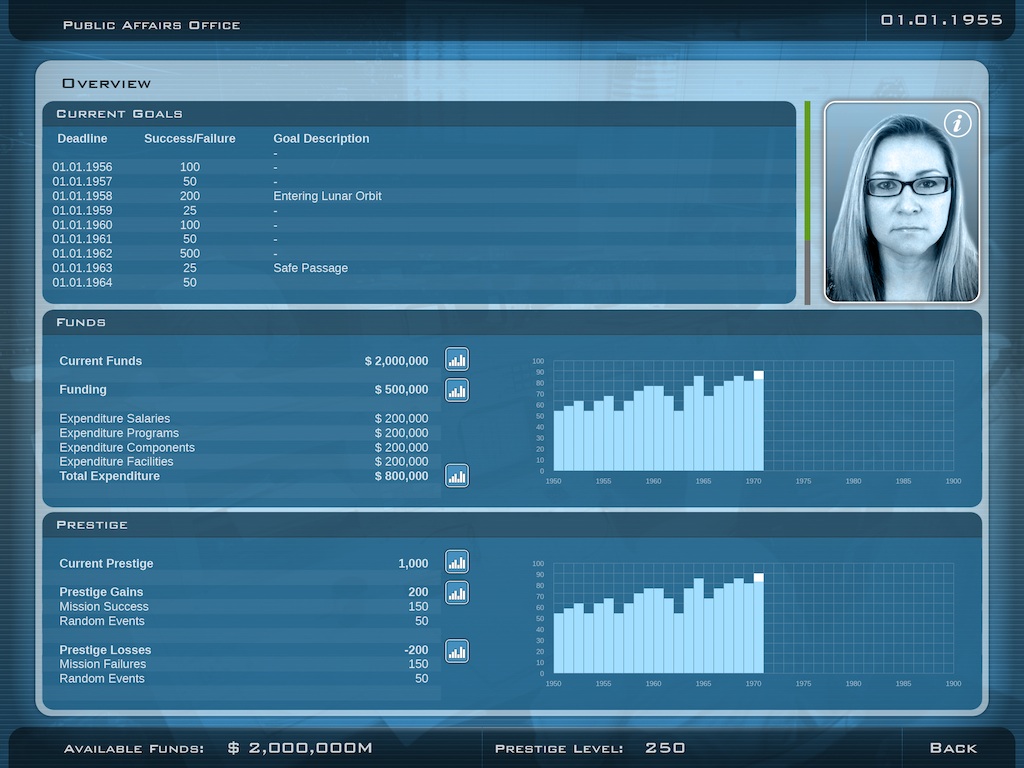 Buzz Aldrin’s Space Program Manager, developed by Polar Motion Games. This one has been getting a lot of buzz (Sorry; I couldn’t resist.) for its great-looking graphics and unusual gaming approach. Instead of building forces to go out and blow something up or mining resources with which to build an empire (and then go blow something up), BASPM requires players to plan the steps they’ll need to take in order to create a space vehicle that can put astronauts on the moon and eventually beyond. What sort of booster rocket will be needed? What kind of training for the astronauts? What skill sets will be needed for a given mission and therefore which astronauts from the available pool would be best suited? Each step along the way is rated for success or failure, and badges are received for successful completion of, say, a specialized training program. Repeated success means funding for your project will likely continue and perhaps be increased. Too many failures and—well, Mom always told you to be a shoe salesman, anyway.