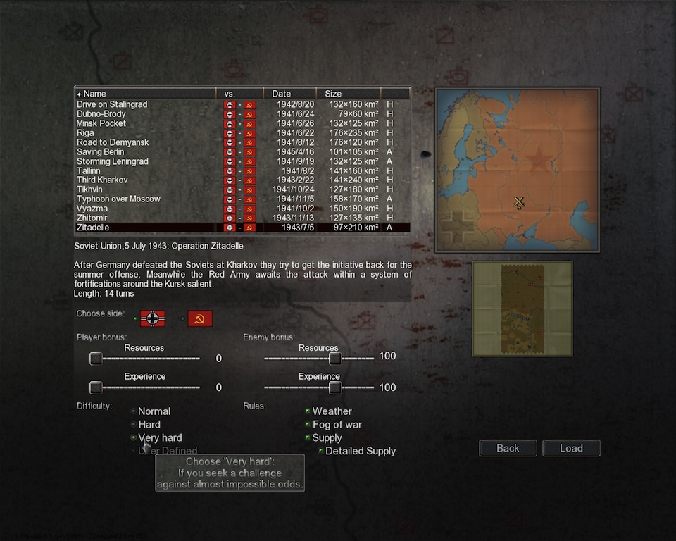The new access to Lordz Studios is helping to make new 3D models, which will give the game a different look and feel, but Strategic Command will return to the hexagon overlay on maps that many players requested; it will use NATO-style counters as well as 3D views. New or upgraded features in the coming release include increased fog of war, a scorecard of how a player has done from game to game, game replays, and an option to resign early and still get a result. Oil supplies and manpower figure in. There is supply by sea and “mulberry” harbors, unit training during production to upgrade ability, and an improved amphibious warfare mechanism. The campaign developer released with the game is the same one used to create it, which makes it easy for modders to write their own scenarios.