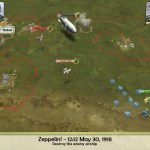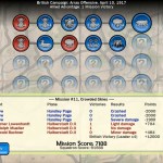 {default}In Ace Patrol, you are given control of a squadron of British, French, American, or German pilots over the Western Front of WWI. You start with a single pilot (two if you skip the tutorial missions), whose skills you build up over time, adding more maneuvers and special abilities. You fly sorties far above the stalemated trenches, choosing between four missions. The missions vary widely, from balloon busting to airfield defense, one on one duels between aces to strafing tanks. Each of the four “offensives” that make up a game (one per year, 1915–1918) are capped off with a big “all in” mission with all four of your pilots against four crack enemy pilots, making for a satisfying buildup.