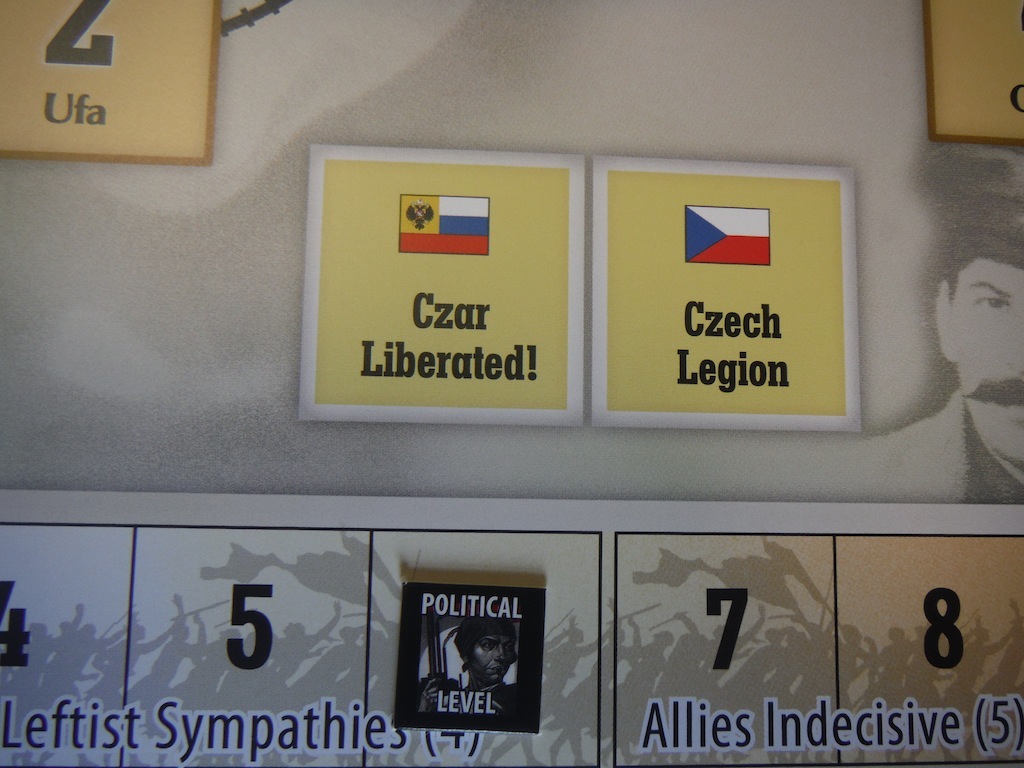 If the political influence of the player falls to zero, the game ends in the Bolshevik’s defeat. Conversely, if the player can increase his political influence to 9 or 10, the game ends, and the player has secured a future for the Bolsheviks.