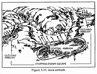 The graphic above displays the central ambush and three smaller point ambushes. With four ambushes planned (simultaneously or sequentially), you can understand the need for synchronization and discipline.