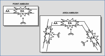 Ambushes come in two types. They are either point ambushes or area ambushes. More information on each follows: