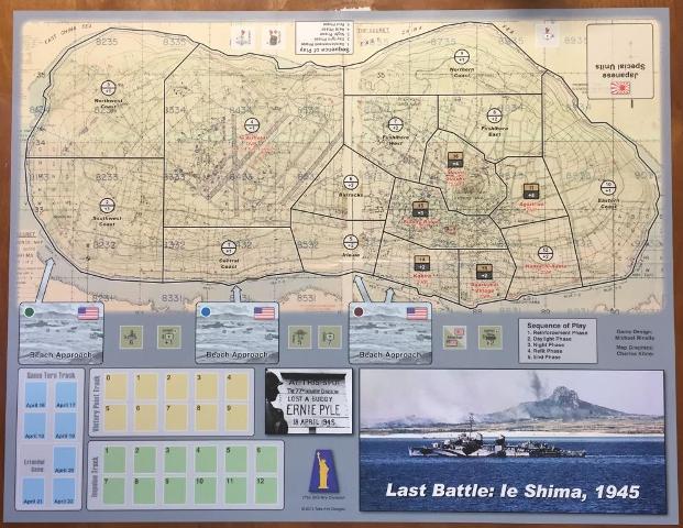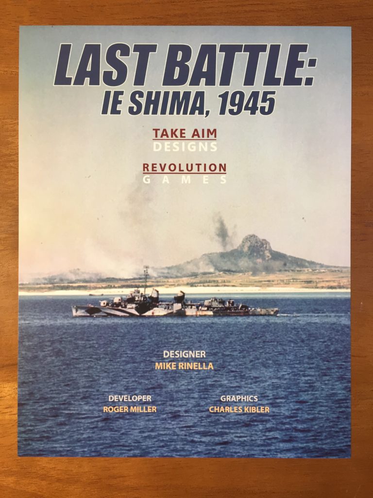 Last Battle: Ie Shima, 1945. Publisher: Take Aim Designs and Revolution Games. Game Designer: Michael Rinella. Developer: Roger Miller. Price $ 30.00.